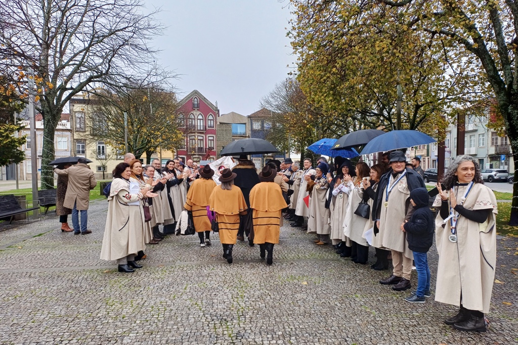 Terminada a cerimónia no Garrett, os confrades percorreram algumas ruas da cidade, num cortejo que terminou junto ao monumento Eça de Queirós, na Praça do Almada, para a já tradicional fotografia de grupo.